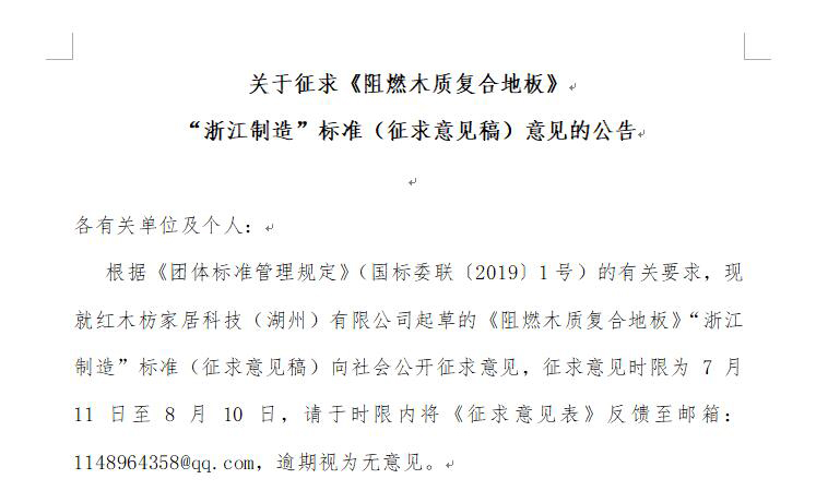 《阻燃木質(zhì)復(fù)合地板》(征求意見(jiàn)稿)